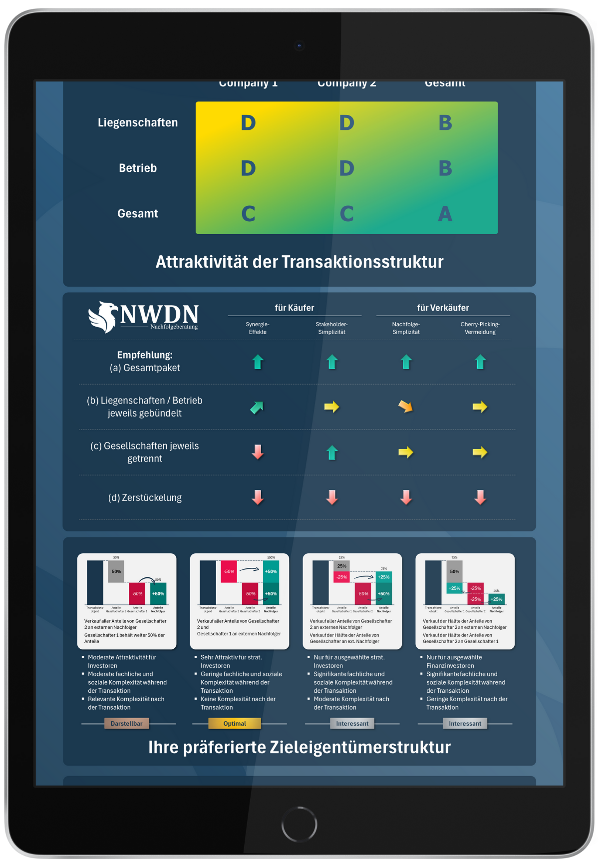 Die NWDN steht für Exzellenz in der inhaltlichen wie optisch ansprechenden Aufbereitung Ihres Lebenswerks – vom Investment Teaser und Informationsmemorandum (Info Memo) bis hin zu den Verhandlungsunterlagen.